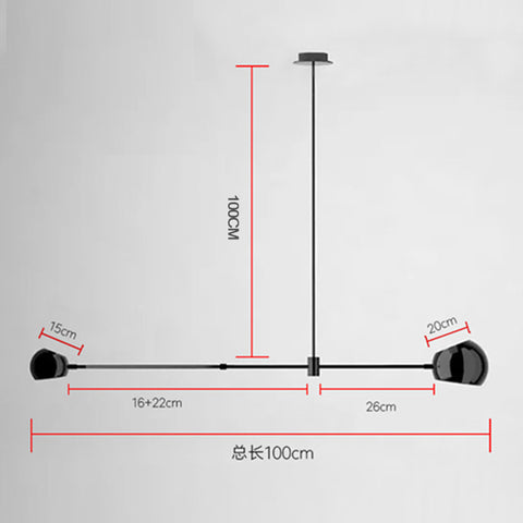 Acaba consists of two Boi lampshades of different sizes, which are installed at opposite ends of a powder-coated steel rod. Suspended by an eccentric weight, each shade rotates 320 degrees, with openings at the top and bottom to maximize light. The suspension device can also work well when installed in multiples. Because of the fexible installation of this Acaba chandelier, the suspension light can be placed anywhere in your space. Equipped with E27/G9 led bulbs, the warm and cozy lights and unique shape make your space in a different atmosphere.
