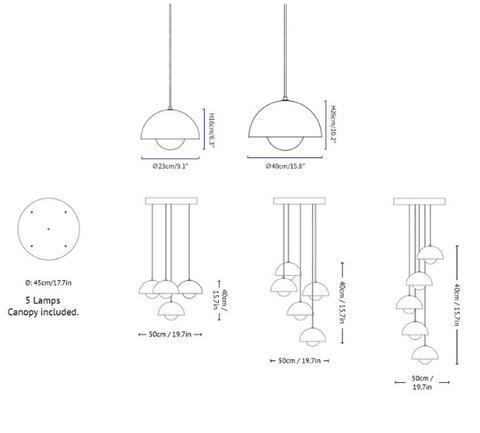 Flowerpot pendant is one of the classic works of Danish design master Verner Panton. Flowerpot Pendant Light consists two semi spheres, equpped with E27 led bulbs. The lighting reflected from these two spheres, becomes more cozy,soft and beautiful.