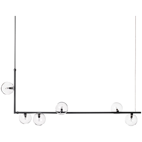 The refined linear Air 73 Pendant is a striking Swedish lighting design from Care of Bankeryd. The contemporary geometric style beautifully showcases its airy and elegant features, a knockout design that would instantly add a modern Scandi aesthetic to your mid-century décor. With six transparent glass spheres sitting on a right angle black-lacquered steel structure, Air 73 Pendant is truly an outstanding piece. Combining the black metal structure with these clear spherical bulbs, the Air suspension light is reminiscent of a Hollywood dressing table, oozing a luxury yet refined finish whilst impressively illuminating your space. Suspend the extraordinarily modern Air 73 pendant in a welcome to upscale a hotel foyer, or equally stun your guests as you watch the pendant dazzle above a large dining table.