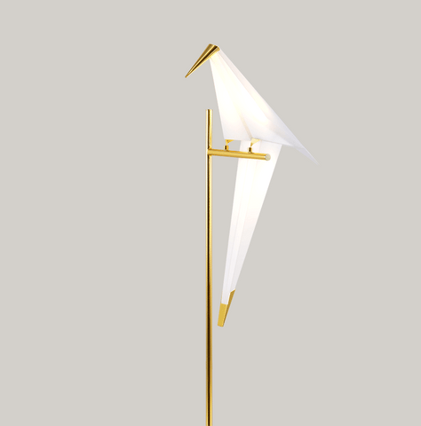 It is made of acrylics birds and metal fixture ended with antique brass finish. This perch ligh is just like a picture and vividly sculptures the beauty and poetry of a bird perched on a branch. The birds sitting on a branch are free to swing when sofrly touched,gently glowing and bringing along the promise of spring.